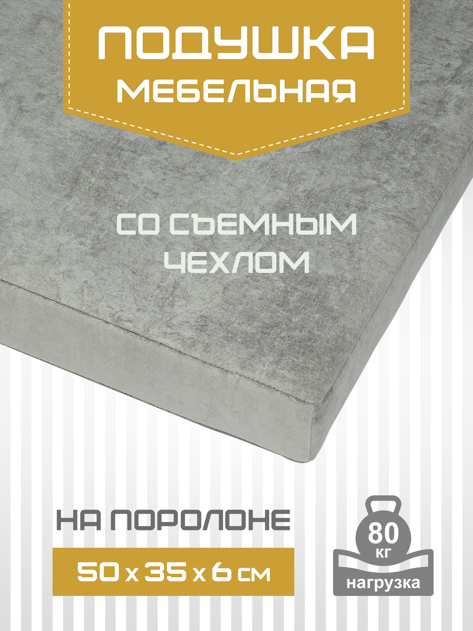 Подушка мебельная ТЕКСФОРМ на поролоне 50х35х6 см съемный чехол универсальные крепления цвет серый