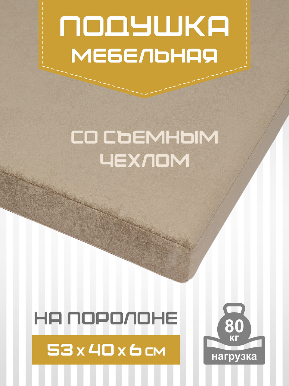 Подушка мебельная ТЕКСФОРМ на поролоне 53х40х6 см съемный чехол универсальные крепления цвет бежевый